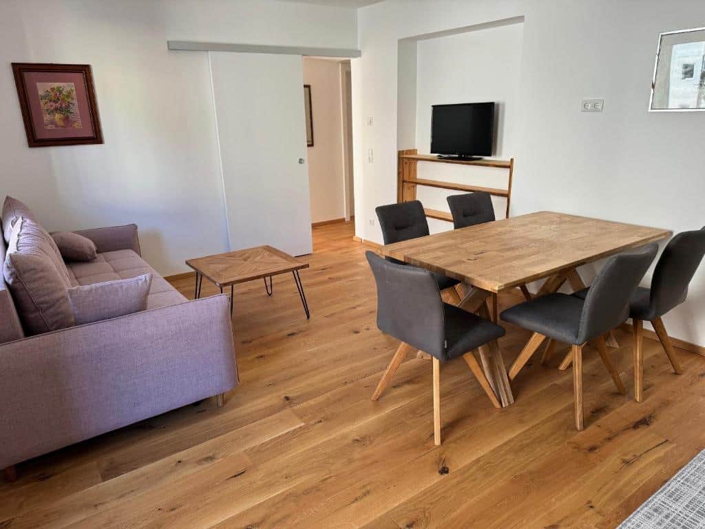 One-Bedroom Apartment with Balcony and Mountain View :This apartment includes a kitchenette with a living room, a separate bedroom and a bathroom with a shower. The kitchenette is fitted with a stovetop, a refrigerator, a dishwasher and kitchenware. Boasting a balcony with garden views, this apartment also offers soundproof walls and a flat-screen TV with cable channels. The unit has 2 beds: a double bed and a double sofa bed.